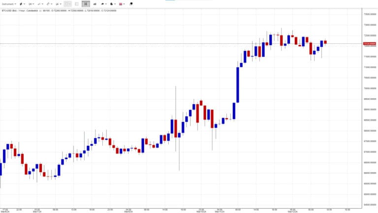 تجاوزت عملة البيتكوين عتبة الـ72 ألف دولار للمرة الأولى في تاريخها، مما أثار تفاؤلاً كبيراً بين المستثمرين والمتداولين في السوق. وجاء هذا الارتفاع الكبير